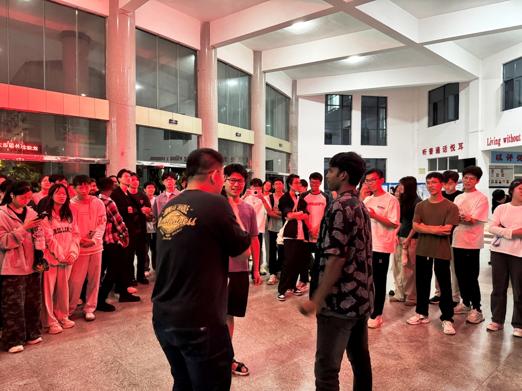 On the evening of September 25, 2025, at 7:00 p.m., Jiujiang University organized a vibrant celebration of the Mid-Autumn Festival in the Xiangyuan Building, located next to the Houde Building. The event was attended by both Chinese students and international students from Pakistan, Nigeria, and Cambodia, creating a truly multicultural atmosphere.