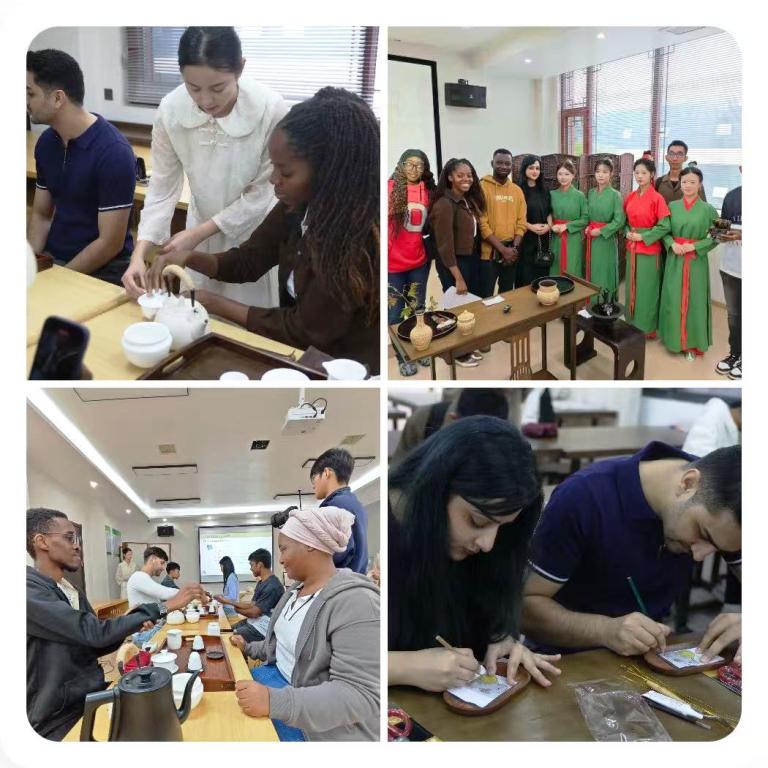 9月24日,2025年江西省中外人文交流周非遗与茶文化体验活动在九江职业大学顺利举行。来自九江市内高校的30余名中外师生共同走进校园,体验茶艺制作与非遗技艺,开启一场融合传统与现代的文化之旅,我校16名国际学生参加了活动。